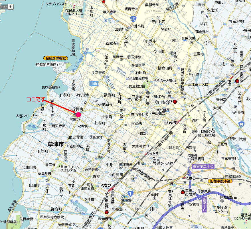 大津・瀬田方面からお越しのお客様は、浜街道を守山方面へ向かって真っ直ぐ進んで下さい。