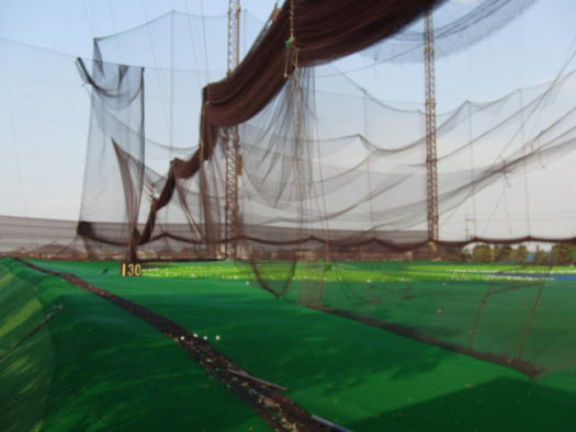 下のところから、全200ヤードにわたって全てネットが裂けてしまいました。 | |