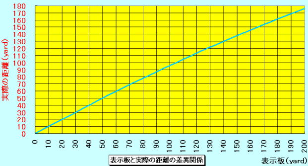 そのため当ゴルフ練習場においては、その分を考慮し、距離表示板は実際の距離よりも短い位置に設置しています。