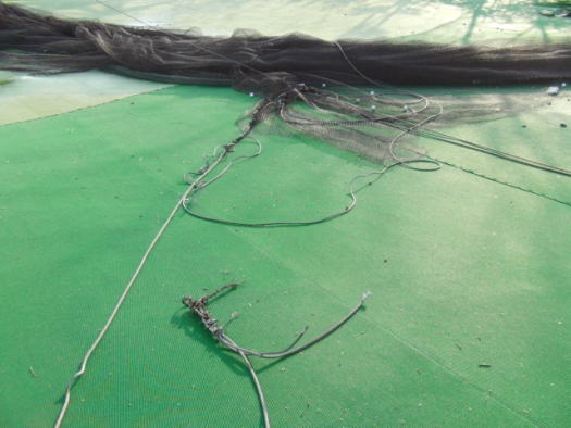 下のところから、全200ヤードにわたって全てネットが裂けてしまいました。 | |